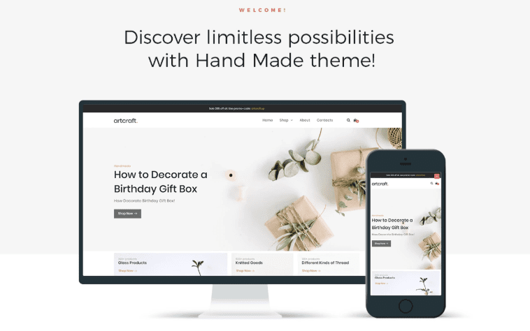 Open your online shop specialized in handmade goods using an attractive Artcraft theme. It has a neat design and an intuitive interface that will allow attracting more visitors and potentials customers to your store. You will show products by categories, new arrivals, also you will be able to add videos displaying how the products can be used. It will be possible to customize the website according to your requests and vision thanks to a great Jet plugins toolkit for Elementor page builder. With JetWooBuilder and WooCommerce plugins, you will be able to create eCommerce page templates using loads of special widgets and stylish page layouts. Using JetCompareWishlist plugin you will add comparison and wishlist functionality to the pages. JetProductGallery plugin will allow presenting product images in the most convenient way, in the form of a gallery. JetElements plugin will provide a set of useful widgets for enriching the content of your website easily and quickly. Your handmade shop will be livened up with the help of a responsive Artcraft theme.