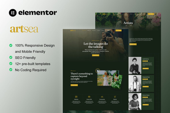 Artsea is Elementor Template Kit for Photography & Art Gallery website. This template has cool layout with modern style design, simple and professional look. Suitable for any business related to art gallery, online portfolio, photography, art collections, digital art portfolio, etc. You can easily build professional art gallery & photography website with this Elementor Template Kit. Just drag and drop, no coding required.
