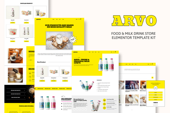 Arvo is an Elementor Template Kit for quickly and easily creating a modern store website for your food and drink business using the Elementor Pro Page Builder and WooCommerce plugins for WordPress.