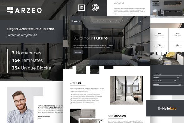 Arzeo – Elegant Architecture & Interior Elementor Template Kit