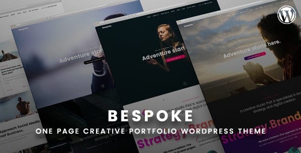 - Bespoke is a Premium One page WordPress Theme best suitable for Design Agencies, Startups, Freelancers, Photographers, Personal Portfolios, Corporate and more. Bespoke is easy to customize as per your requirements and comes with 3 unique designs with blog pages and portfolio detail pages.