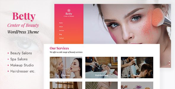 Betty – Beauty Salon and Makeup WordPress is perfect if you like a minimal, clean and modern design. This theme is ideal for beauty salons, makeup studio, hairdresser, nail salon, skin care shop, cosmetic health, spa salon, lifestyle and those who need an easy, attractive and effective way to share their work with clients.