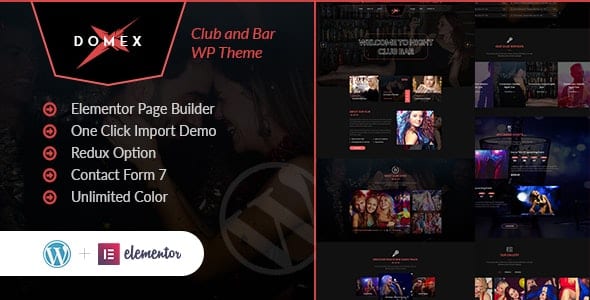 - Domex is awesome Night Club WordPress Theme For Band, Pub, Club, Dance, Party Night, Portfolio, Photographer, Digital Studio, Disco, Jockey, Adult Content, Bands, Music, Video Gallery. Domex is a powerful, vibrant Night Club, Concert, DJ, Festival WordPress Theme with a modern festive design. It was developed specifically for any kind of Night Club, Concert or Festival. Also it fits a lounge bar, any event or party website. Domex can be used for showcasing your DJ or musician career and can be interesting for club music fans.