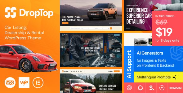 Drop Top is a stylish, responsive, refined and powerful Car Rental & Taxi Service WordPress Theme. It has a high-class design perfect for a modern online car rental company website & Limousine rental services agency. Also, you can easily use this template to build a contemporary website for taxi service bureau, auto mechanic service firm, or car repair shop. The theme comprises the most useful features to ensure your corporate or private rental business runs smoothly.