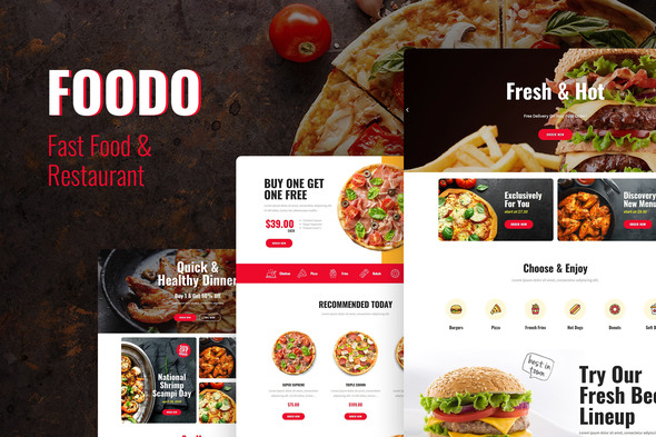Taste the fast food template perfection with Foodo! Packed with a delicious set of homepages and vast practical elements, this kit has perfect ingredients for your fast food showcase. Ideal for any candy store, burger, snack or pizza bar, and sweet site. Present your mexican food, italian cuisine, or diner with style. Share the cooking inspiration via food menu and surprise your visitors with easy table reservation today.