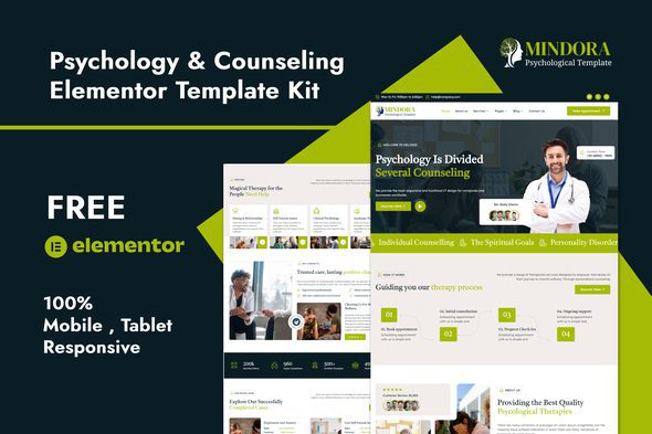 Mindora – Psychology & Counseling Elementor Template Kit is designed specifically for Psychiatrist, Therapist, Mental Health Services and Psychological Therapy service website. It has home pages and 10 inner pages and has a complete template package to launch your Psychology & Counseling website. Mindora is a clean and professional design with a 100% responsive layout, retina-ready. Save your time to making a Psychology & Counseling website with this Elementor template kit. With Elementor Page Builder, you can easily edit or customize it, no coding is required, just drag and drop.