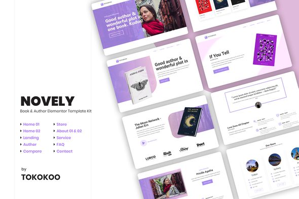 Novely is a modern Elementor Template Kit that is perfect for creating a website for Book Publisher, Book Author, Publishing Company, Stationary, Book Store, Magazine, or Author website. This template has a Unique and Professional design with a 100% responsive layout, retina-ready, and easy to customize.
