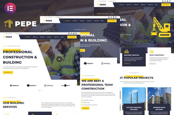 Pepe – Building & Construction Business Services Elementor Template Kit is a collection of layouts for the Elementor page builder WordPress plugin, designed for use with Elementor Free Version for a clean Design. It works with most themes and is optimized for use with the free Hello Elementor theme.