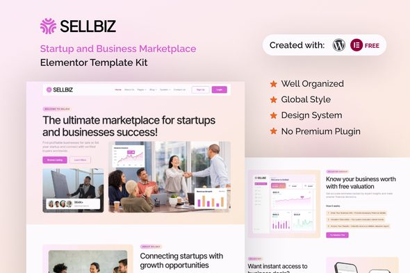 Introducing “Sellbiz” – Your premium solution for creating a sophisticated and professional startup and business marketplace website! Built with WordPress and enhanced by Elementor’s powerful features, this template kit is designed to revolutionize how businesses connect and trade online.