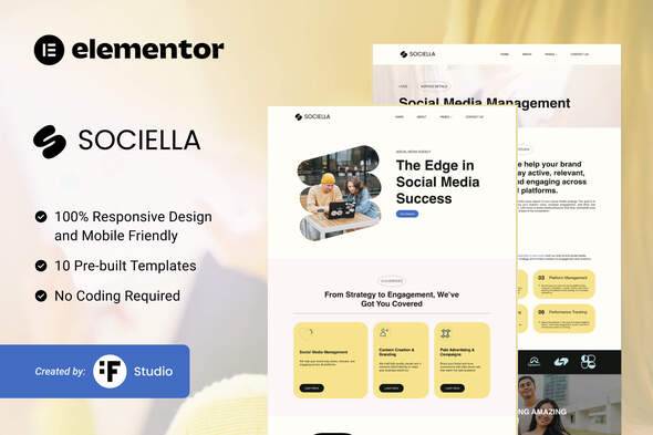Sociella – Modern Elementor Template Kit for Social Media AgenciesSociella is a cutting-edge and professionally designed Elementor Template Kit, perfect for social media agencies, digital marketing firms, and creative strategists. Featuring a vibrant and engaging layout, Sociella ensures your agency stands out while showcasing your services, portfolio, and expertise effectively.
