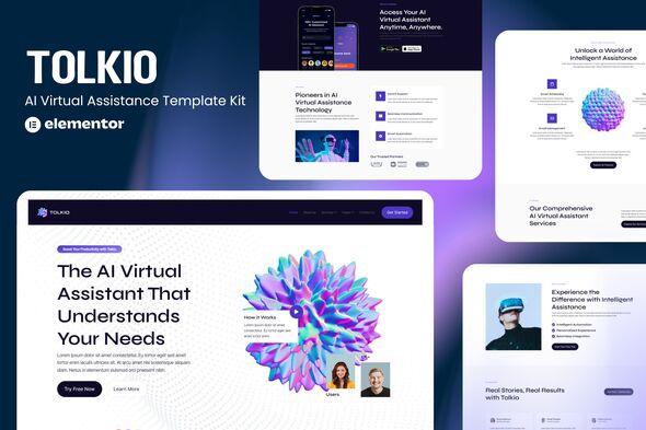 Tolkio is a sleek, modern Elementor template kit designed for AI-powered virtual assistant platforms, productivity tools, or smart automation services. With its futuristic design and intuitive layout, Tolkio helps you highlight your product’s intelligent features—like instant support, smart scheduling, and seamless integrations—in a clean, compelling way.