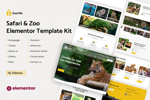 Zoorilla is a modern & clean Elementor Template Kit that made for Safari and Zoo, Animal Conservation, Travel, and Tour Website or all the thing about travel with animals. This kit has a beautiful and unique design with a 100% responsive layout and retina-ready!